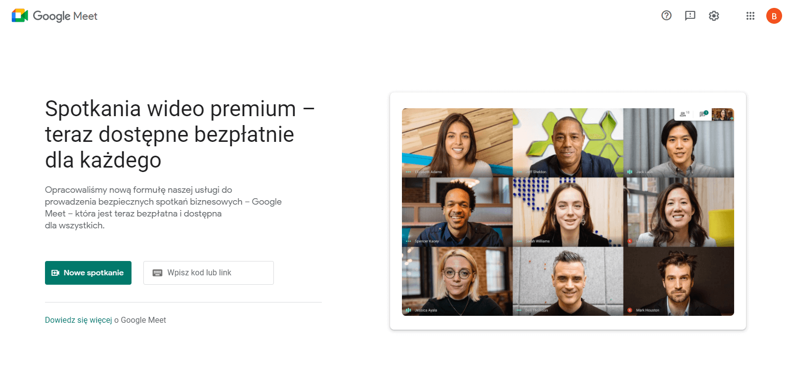 - Wejdź na stronę Google Meet